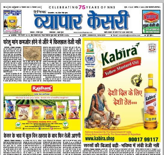 Vyapar Kesari is a dedicated hindi daily newspaper.It covers all agri-business news, provides accurate and regular commodity market updates, tips, market reports and commodity rates.