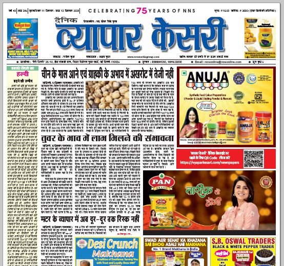 Vyapar Kesari is a dedicated hindi daily newspaper.It covers all agri-business news, provides accurate and regular commodity market updates, tips, market reports and commodity rates.