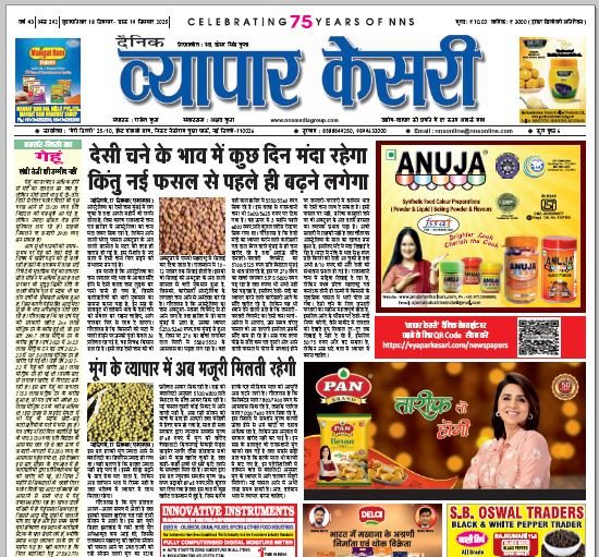 Vyapar Kesari is a dedicated hindi daily newspaper.It covers all agri-business news, provides accurate and regular commodity market updates, tips, market reports and commodity rates.