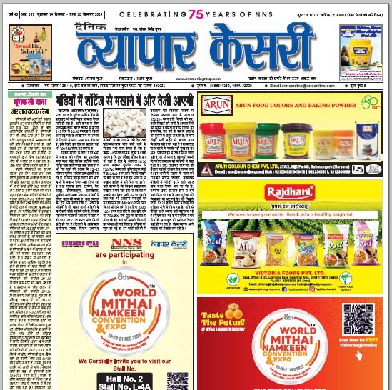 Vyapar Kesari is a dedicated hindi daily newspaper.It covers all agri-business news, provides accurate and regular commodity market updates, tips, market reports and commodity rates.