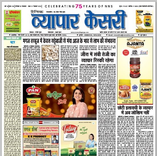 Vyapar Kesari is a dedicated hindi daily newspaper.It covers all agri-business news, provides accurate and regular commodity market updates, tips, market reports and commodity rates.