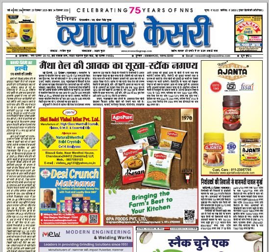 Vyapar Kesari is a dedicated hindi daily newspaper.It covers all agri-business news, provides accurate and regular commodity market updates, tips, market reports and commodity rates.
