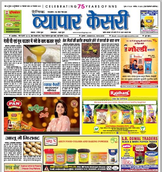 Vyapar Kesari is a dedicated hindi daily newspaper.It covers all agri-business news, provides accurate and regular commodity market updates, tips, market reports and commodity rates.
