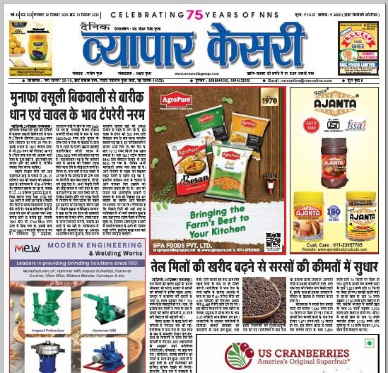 Vyapar Kesari is a dedicated hindi daily newspaper.It covers all agri-business news, provides accurate and regular commodity market updates, tips, market reports and commodity rates.