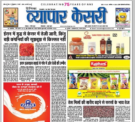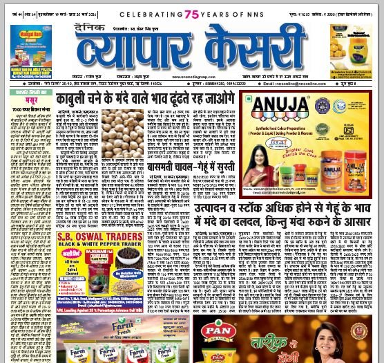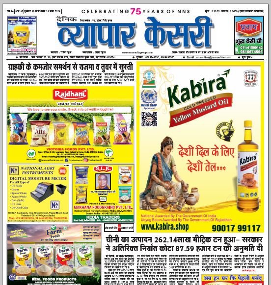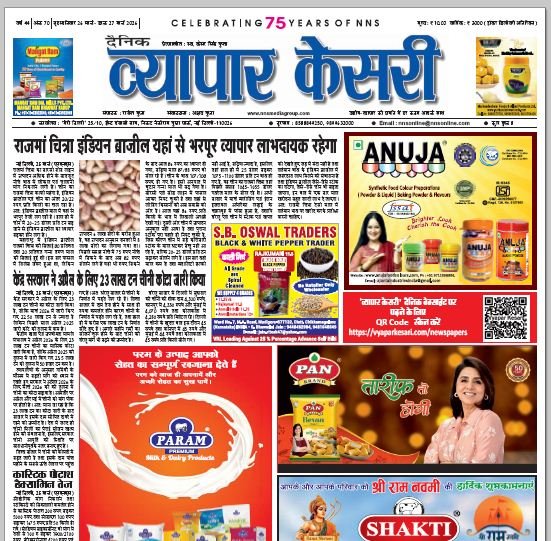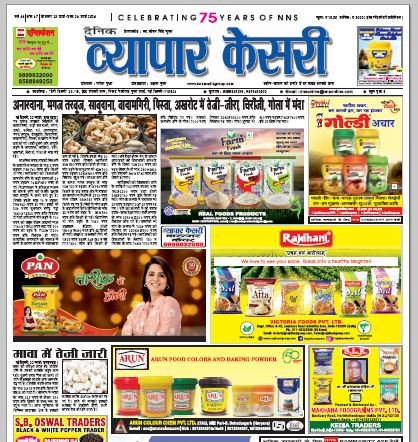 Vyapar Kesari is a dedicated hindi daily newspaper.It covers all agri-business news, provides accurate and regular commodity market updates, tips, market reports and commodity rates.