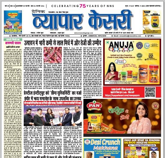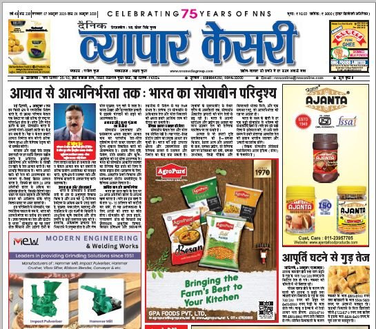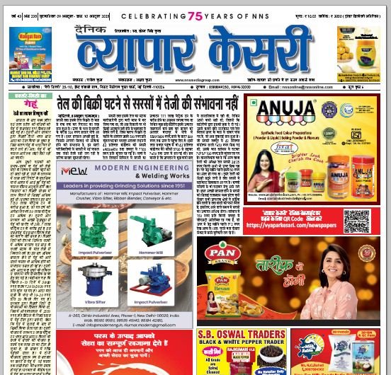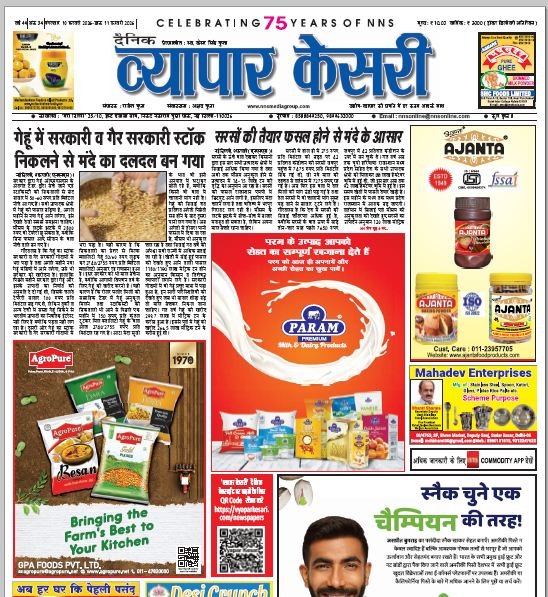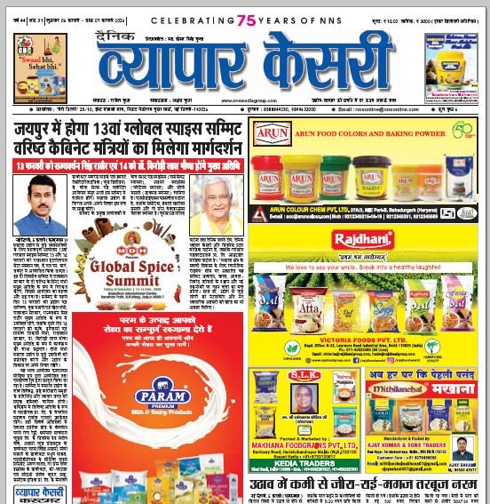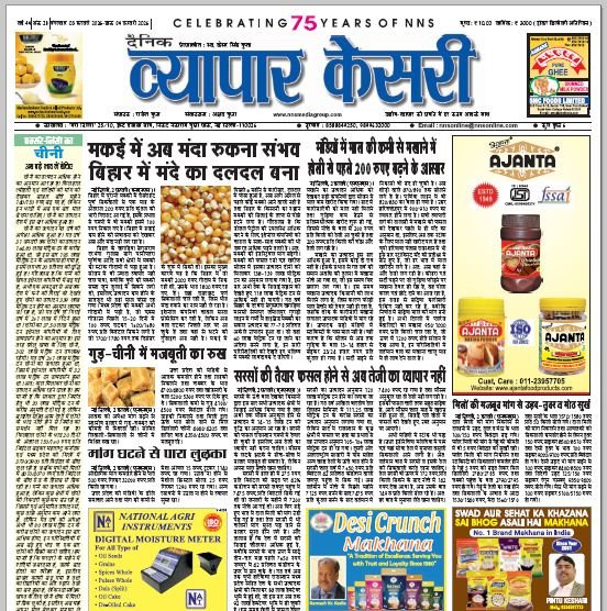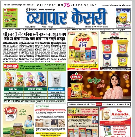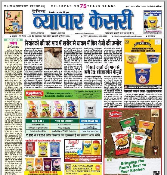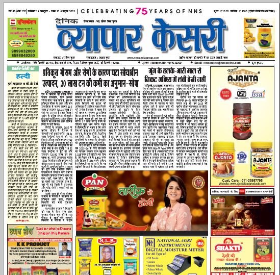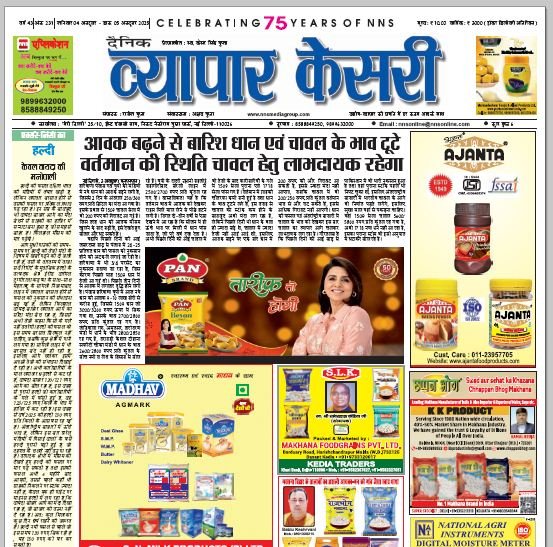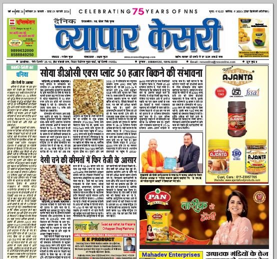 Vyapar Kesari is a dedicated hindi daily newspaper.It covers all agri-business news, provides accurate and regular commodity market updates, tips, market reports and commodity rates.