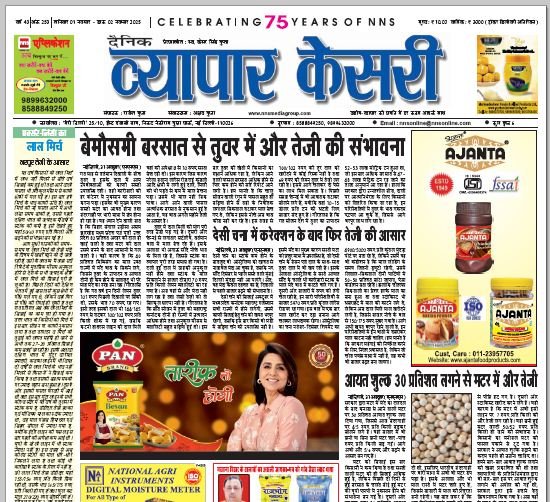 Vyapar Kesari is a dedicated hindi daily newspaper.It covers all agri-business news, provides accurate and regular commodity market updates, tips, market reports and commodity rates.