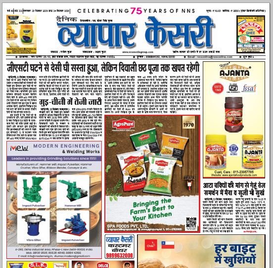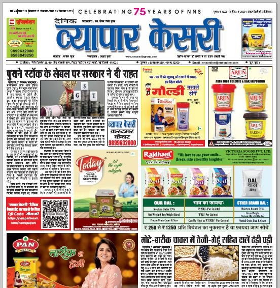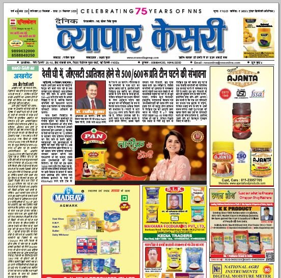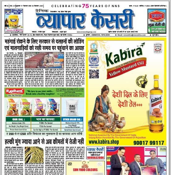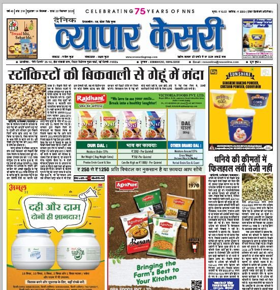 Vyapar Kesari is a dedicated hindi daily newspaper.It covers all agri-business news, provides accurate and regular commodity market updates, tips, market reports and commodity rates.