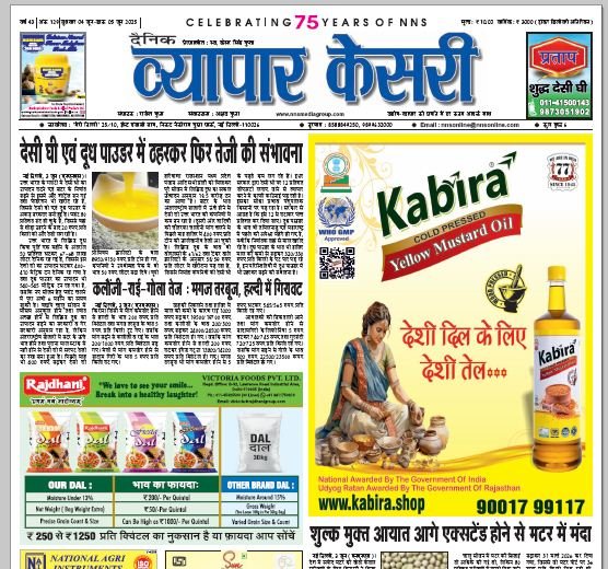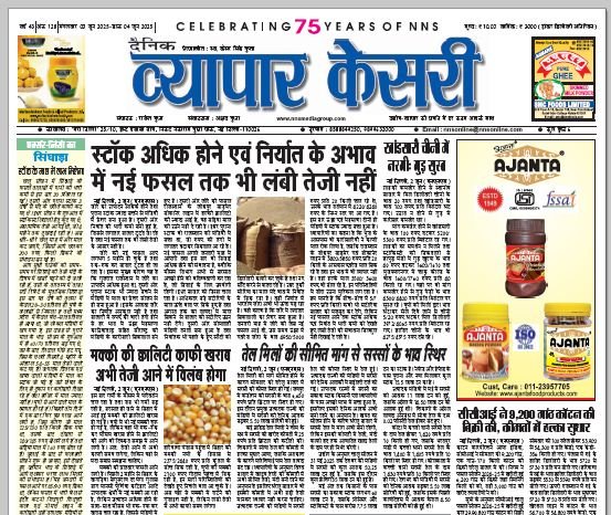 Vyapar Kesari is a dedicated hindi daily newspaper.It covers all agri-business news, provides accurate and regular commodity market updates, tips, market reports and commodity rates.