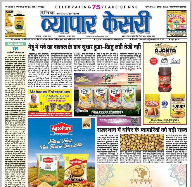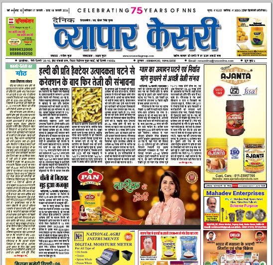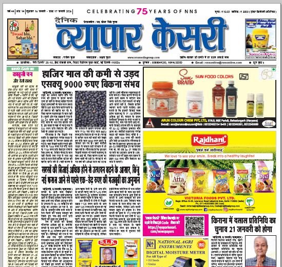 Vyapar Kesari is a dedicated hindi daily newspaper.It covers all agri-business news, provides accurate and regular commodity market updates, tips, market reports and commodity rates.