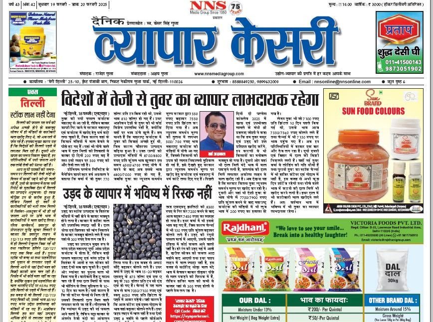 Vyapar Kesari is a dedicated hindi daily newspaper.It covers all agri-business news, provides accurate and regular commodity market updates, tips, market reports and commodity rates.