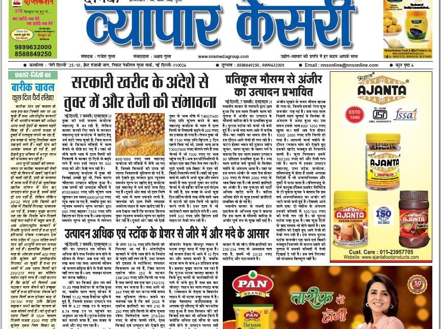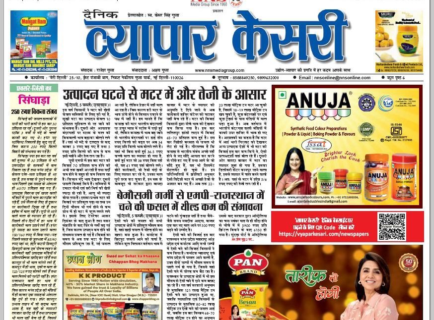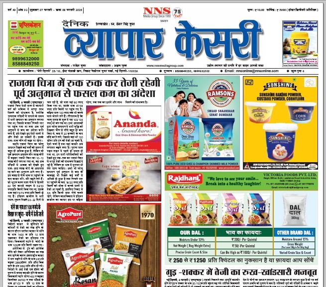 Vyapar Kesari is a dedicated hindi daily newspaper.It covers all agri-business news, provides accurate and regular commodity market updates, tips, market reports and commodity rates.