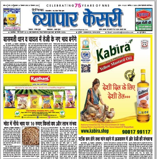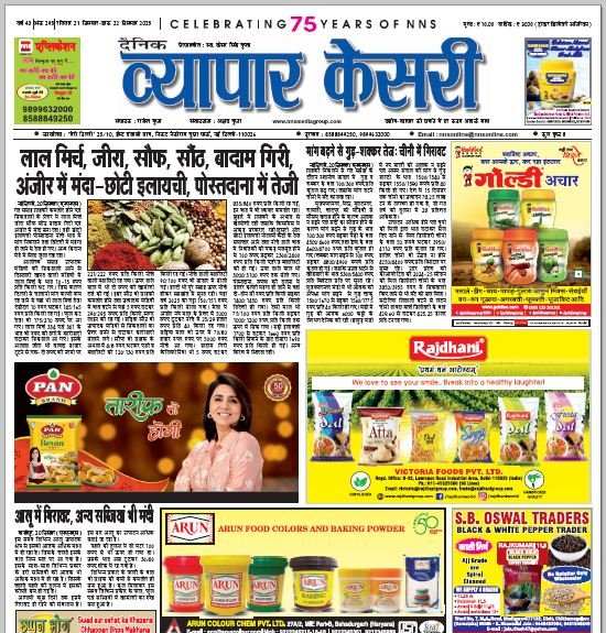 Vyapar Kesari is a dedicated hindi daily newspaper.It covers all agri-business news, provides accurate and regular commodity market updates, tips, market reports and commodity rates.