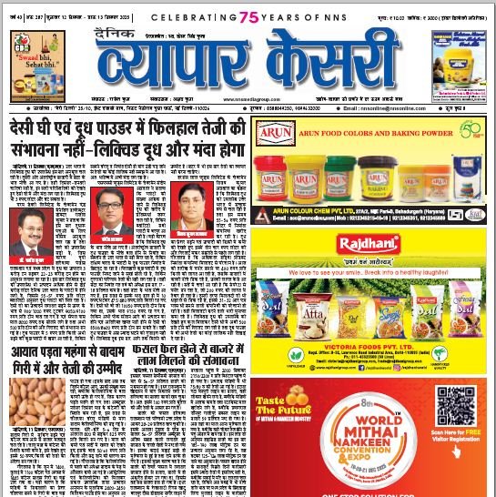 Vyapar Kesari is a dedicated hindi daily newspaper.It covers all agri-business news, provides accurate and regular commodity market updates, tips, market reports and commodity rates.